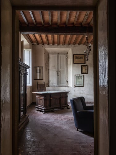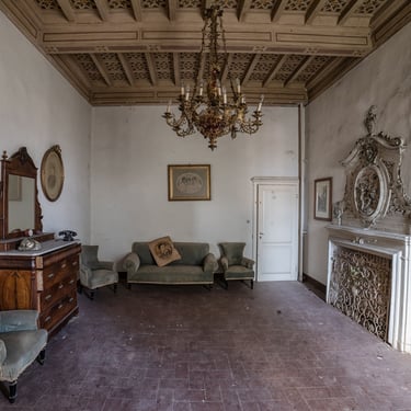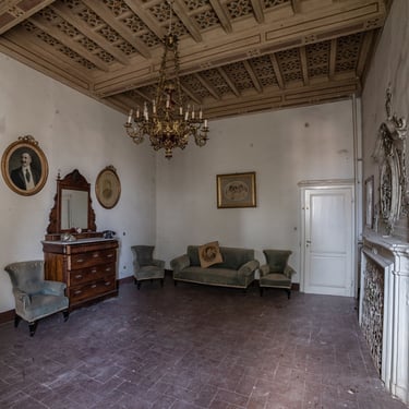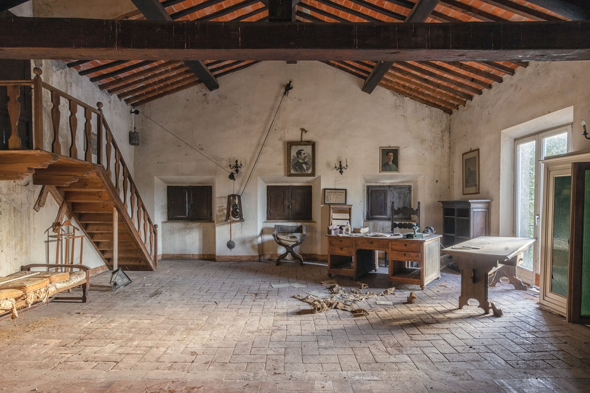 Il bianco sui muri inizia a cedere il posto al nero della muffa e al grigio delle crepe nell'intonaco. Il pavimento in cotto si dimentica del lucido ed ogni giorno che passa accumula polvere. Il restauro che ha annichilito queste pareti, si annichilisce a sua volta.