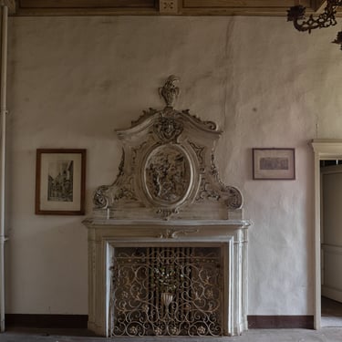 Un bellissimo lampadario penzola al di sotto di un soffitto a cassettoni. Questo ambiente doveva essere centrale nella vita quotidiana di questa dimora. Davanti al tepore di questo camino devono essersi seduti molti nobili locali e non solo. All'interno dello stemma che decora la parte superiore del focolare, si intravedono degli uomini intenti a lavorare, simbolo della magnificenza e del valore della famiglia che lo ha fatto costruire. Sul lato opposto una cassettiera con uno specchio, ai cui lati si trovano due ritratti ovali commemorativi.