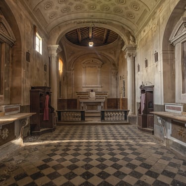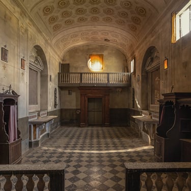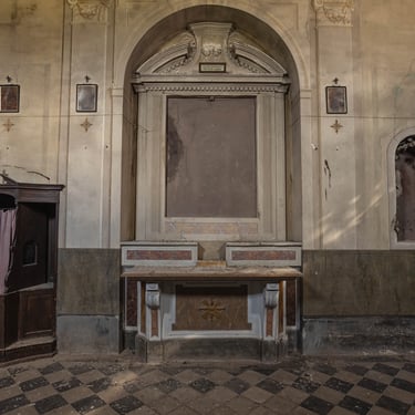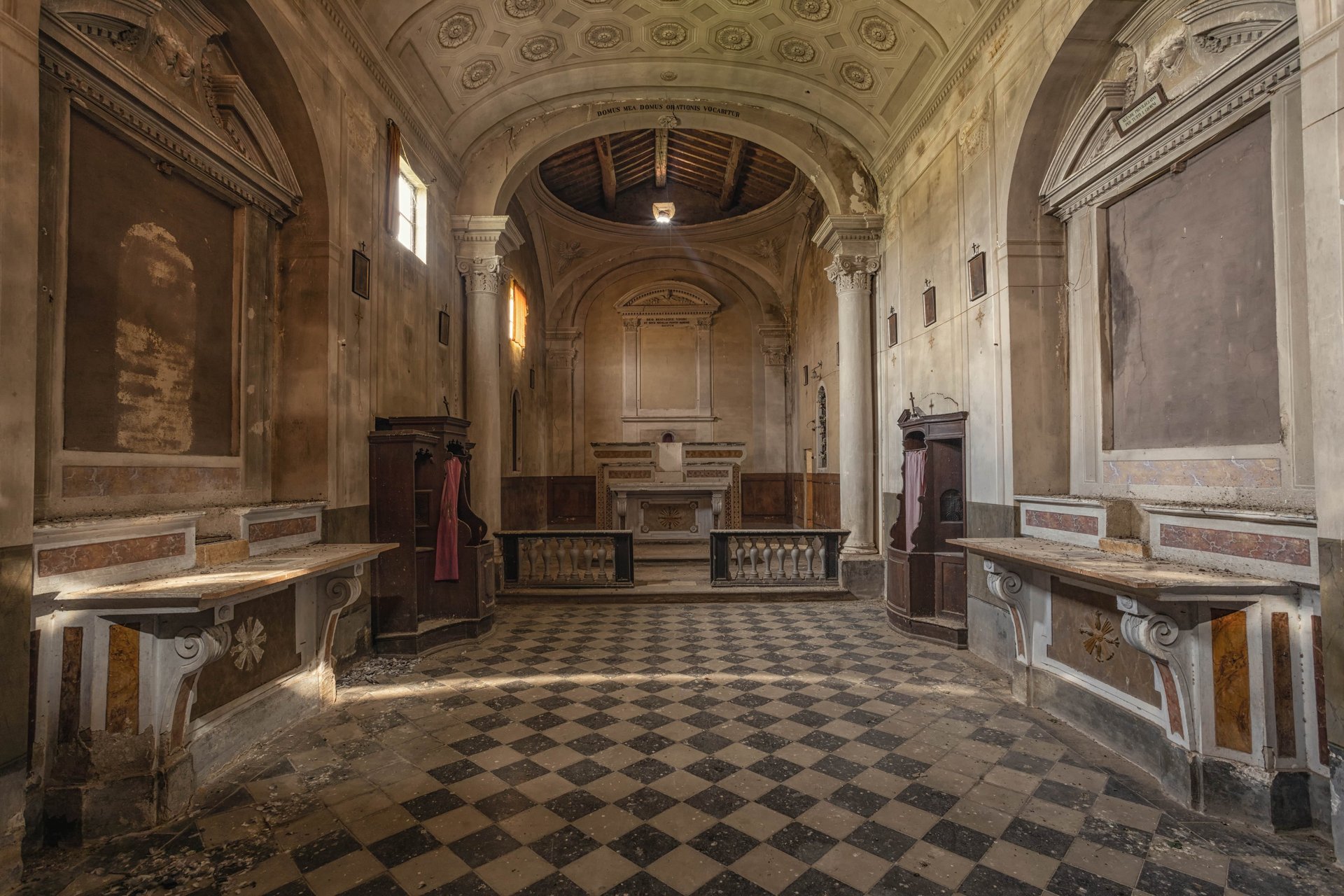 Una chiesa con annessa casa del prete, tra qualche affresco e qualche stanza vuota, davanti all'altare giacciono alcune farfalle decedute.