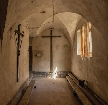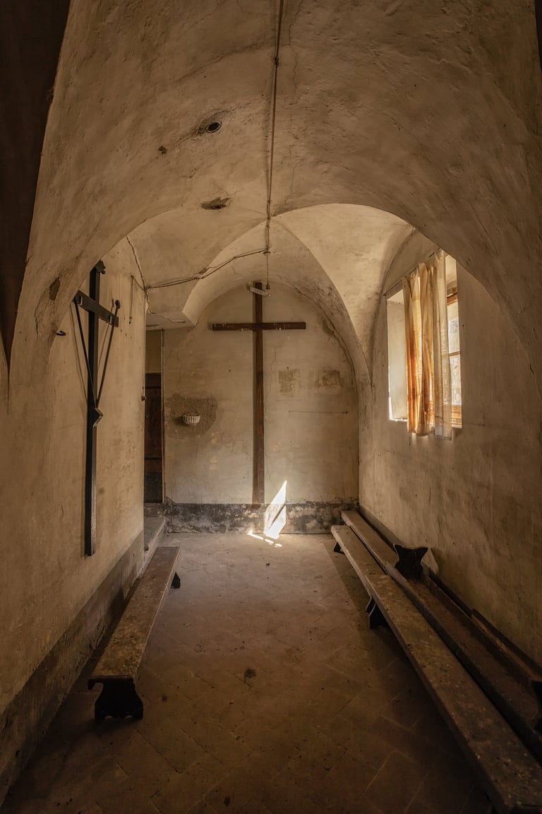 Queste stanze devono aver visto molti parroci susseguirsi nei decenni, i muri spogli e stantìi portano i segni di vite passate. Resta un luogo vuoto e consumato.
