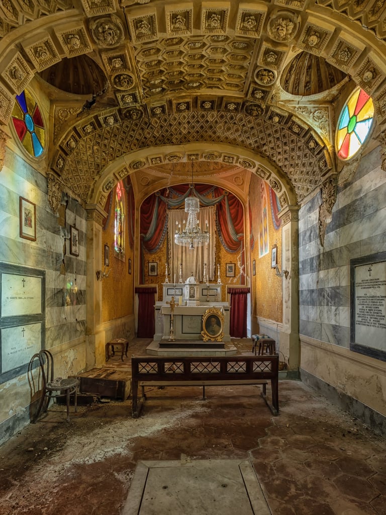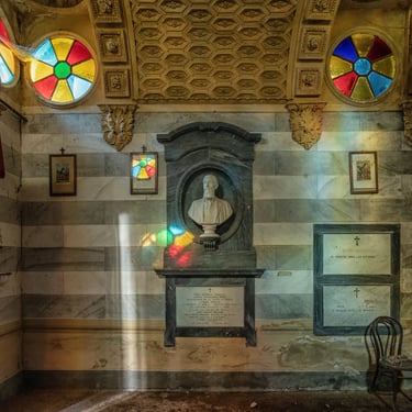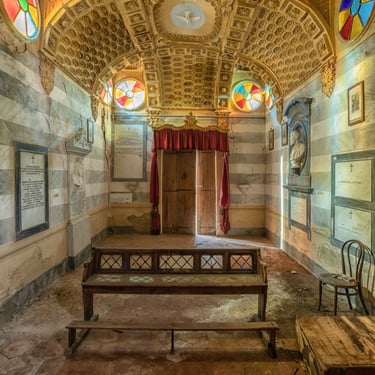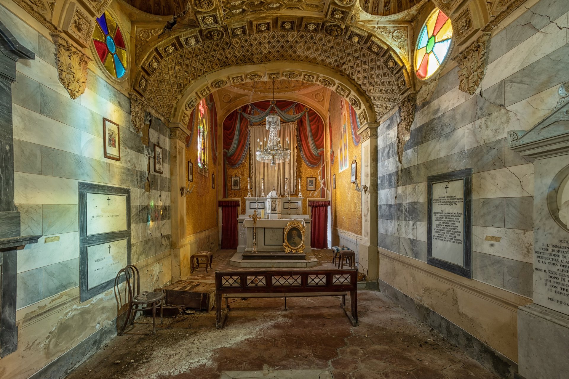 Mi trovo in un luogo nascosto agli occhi di molti. Un luogo che custodisce un tesoro, uno di quei rari posti in cui entri e rimani stupefatto dalla bellezza che emana. In questo reportage non verrà svelato alcun indizio sull'ubicazione segreta di questa cappella. Non spetta a me dirvi se è un oratorio o una cappella di famiglia, sperduta in chissà quale cimitero. E' giusto che chi chiunque si imbatta in questo luogo, ne rimanga stupito, come è successo a me.