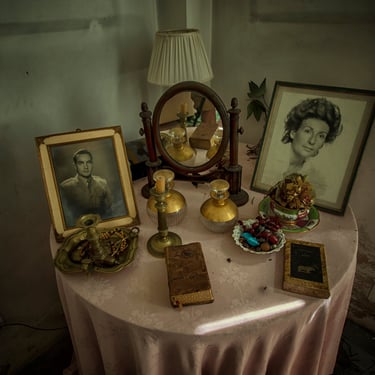 Le aspettative erano piuttosto alte, visto il salone precedente, ma purtroppo la parte inferiore non è al solito livello. Il soffitto presenta delle volte in ogni stanza e crea un effetto particolare assieme alla luce che filtra dalle porte finestre. Gran parte del mobilio sembra che sia stato portata via. In una delle credenze rimaste trovo un'ingente quantità di siringhe di insulina, evidentemente il proprietario doveva essere diabetico. Da una statuetta con una caricatura di un signore in giacca e cravatta, all'incirca in età da pensione, si capisce che il padrone di casa era il presidente di una importante banca del paese. Googlando il suo nome compare un articolo in sua memoria, lo ricorda il giornale locale nel giorno del suo funerale. Non ho mai capito il motivo dell'abbandono, il perchè di aver portato via soltanto la metà degli oggetti da quella casa. Lo scoprirò solo qualche anno più tardi, quando la villa finirà su di un sito di aste immobiliari. Non sono chiari i motivi del sequestro, se un pignoramento o per cause legali. Fatto sta che probabilmente la proprietà deve essere finita improvvisamente nella mani di un curatore ed ha impedito l'accesso ai vecchi proprietari.