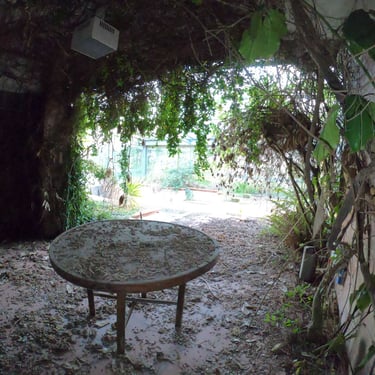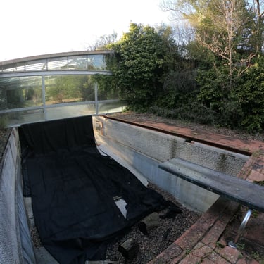 Esplorando l'immenso giardino, una struttura avvolta dalla vegetazione mi incuriosisce. E' una piscina, di cui una metà è al coperto. Qua inizio a immaginare che questo luogo non sia una villa qualunque, o apparteneva a qualcuno veramente facoltoso o era una struttura ricettiva. Nessun indizio particolare. Continuando a curiosare, scopro che la piscina presenta alcuni interni, tra cui un ampio spazio con alcuni tavoli ed un corridoio che porta ad un bagno, dove gli ospiti o i proprietari dovevano cambiarsi. Stranamente il corridoio continua fino ad arrivare ad una porta un pò logora ma decisamente chiusa. Non si va da nessuna parte e la villa è inaccessibile. Riprendiamo il viale che ci riporta alla macchina. La prima visita termina qua.