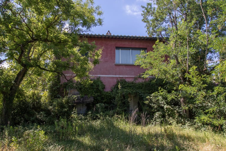La prima volta che percorsi il lungo viale che porta alla villa, era il 2020. Fu l'ultima esplorazione prima del famoso lockdown. Arrivai, assieme ai miei compagni di avventura, di fronte ad una struttura rosa relativamente moderna. Sul retro una casa più piccola, ovvero la depandance, collegata all'edificio principale da una tettoia, utilizzata anche come limonaia. Il giardino era incolto e sembrava esserlo da molti anni. Gli ingressi blindati, nessuna possibilità di accedere. Ricordo un cancello in ferro tinto di bianco, con un braccetto che grazie ad un lucchetto molto grande, lo teneva chiuso. Da dietro le sbarre si intravedeva una scala a chiocciola che saliva sulla terrazza al primo piano.